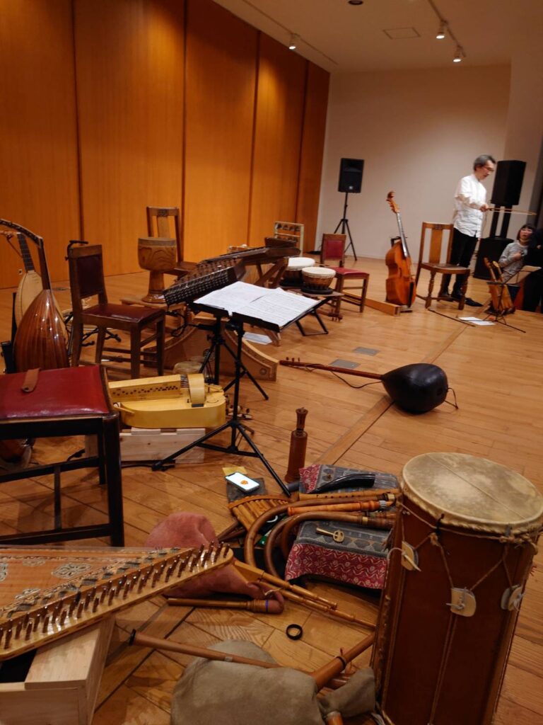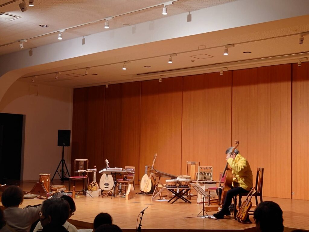 今回のツアーは鹿児島、福岡、大分にて開催された。会場に入るとすでにたくさんの楽器がセッティングされていて、見るだけで楽しく、どんな音が聴けるんだろうと、子供のようにそわそわした気分になった。