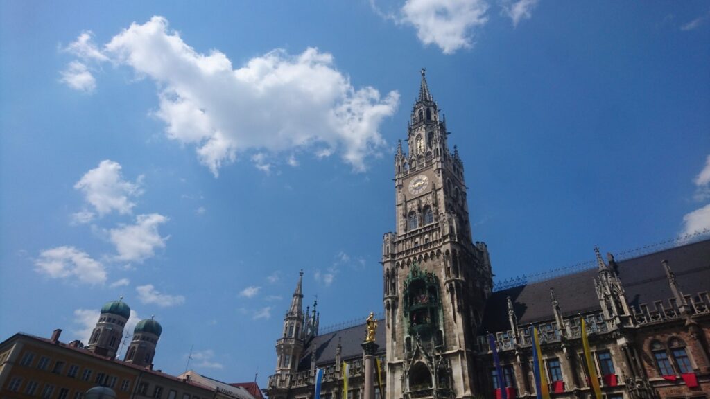 ↑ミュンヘンの市庁舎(上)、聖母教会(下)