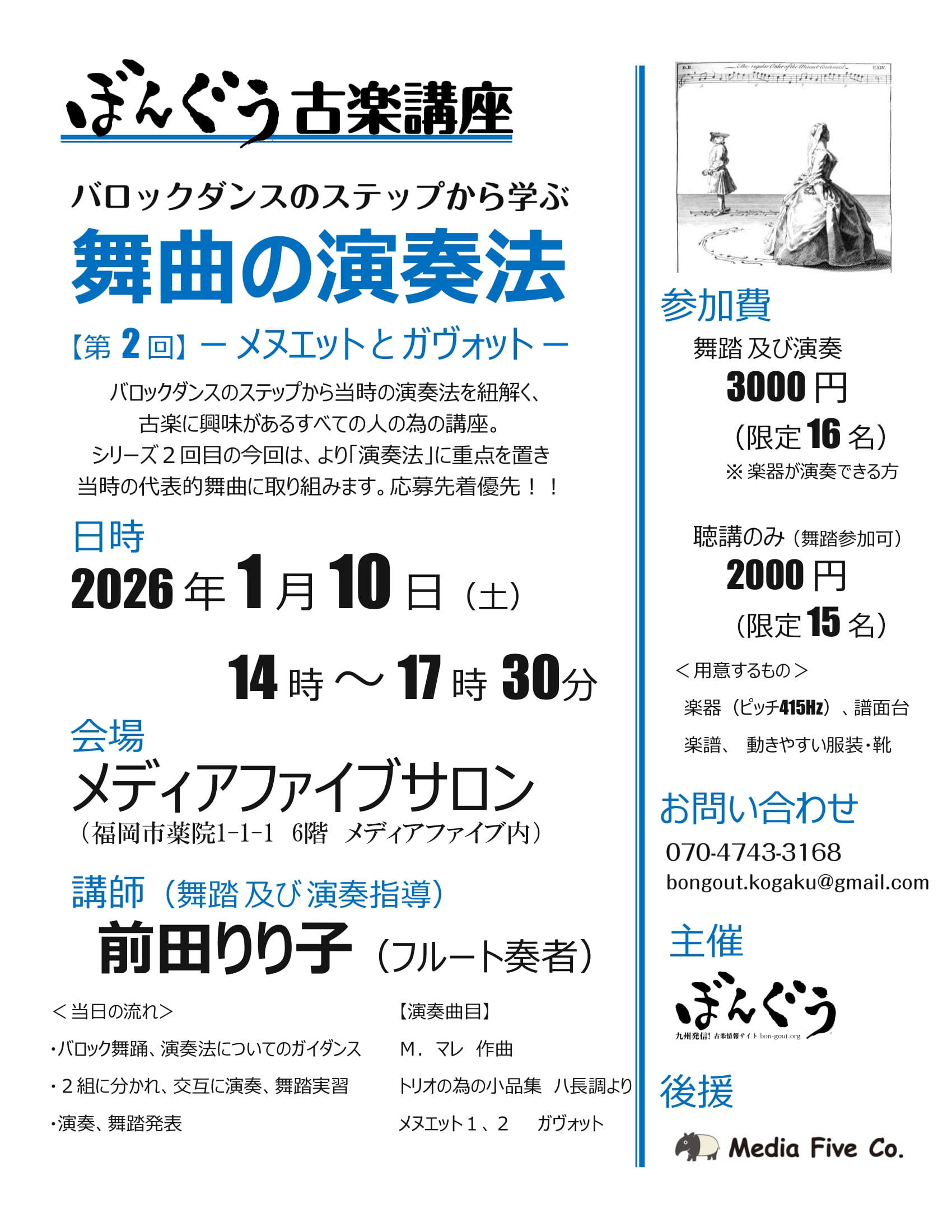 ・バロック舞踊、演奏法についてのガイダンス
