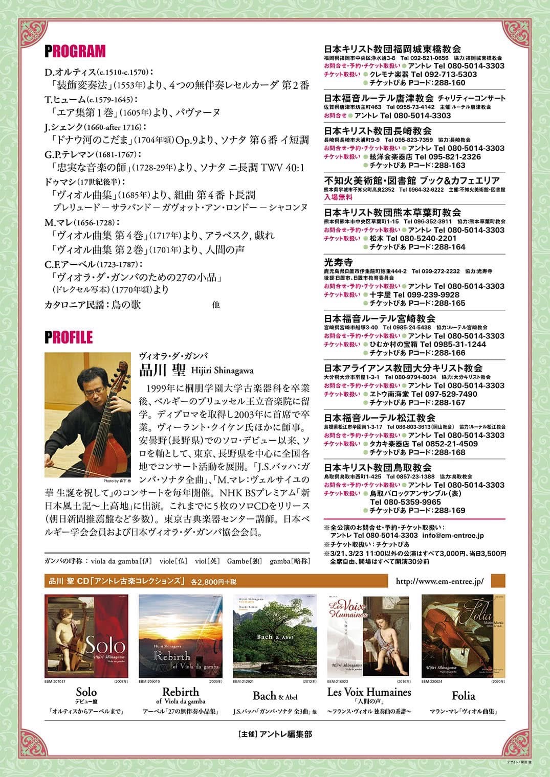 品川聖ヴィオラ・ダ・ガンバ ソロ・ツアー2025