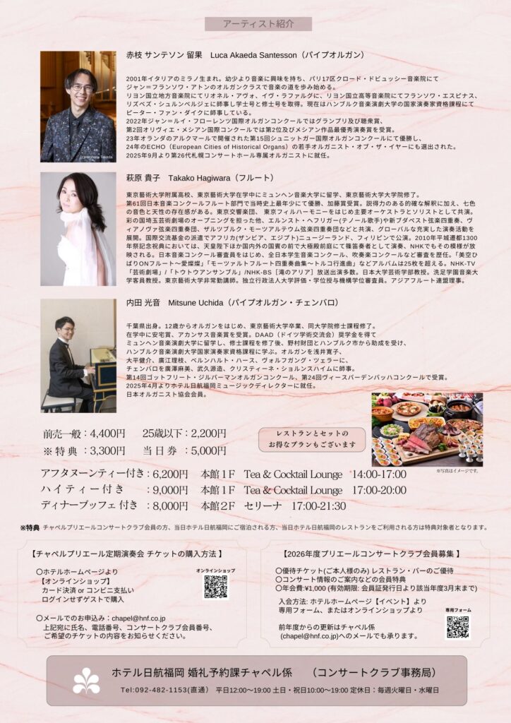 お問い合わせ先:chapel@hnf.co.jp / 092-482-1153(定休日を除く)