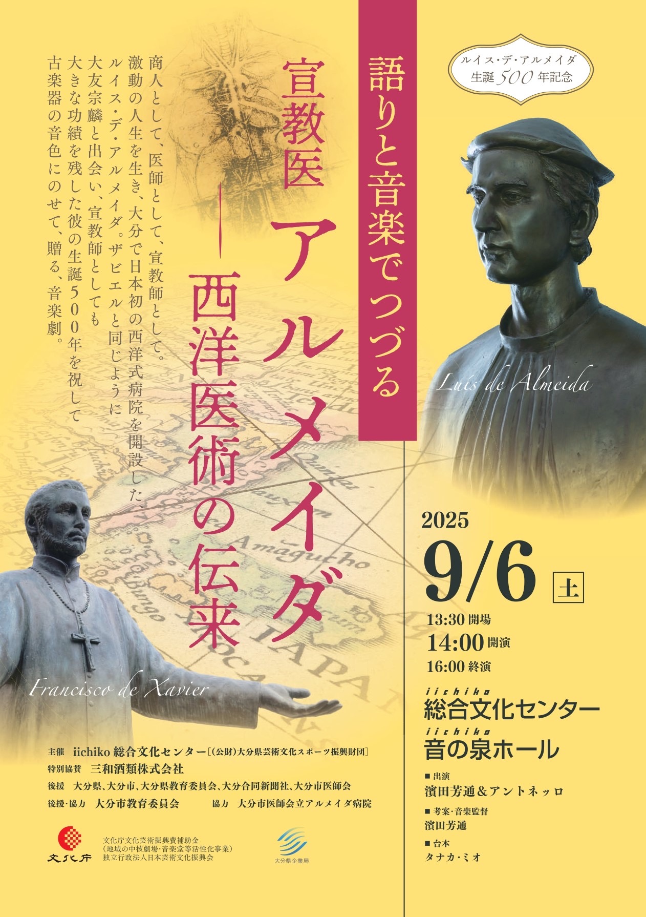 商人として、医師として、宣教師として、激動の人生を生き、大分で日本初の西洋式病院を開設した、ルイス・デ・アルメイダ。ザビエルと同じように大友宗麟と出会い、宣教師としても大きな功績を残した彼の生誕500年を祝して古楽器の音色にのせて、贈る、音楽劇。